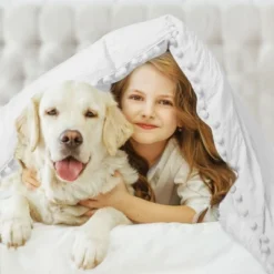3 Pcs Washed Polyester With Pompoms Tassels Bedding Sets Queen White – PiccoCasa