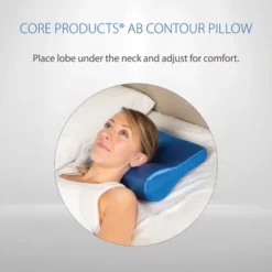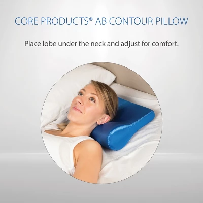 The uniquely shaped Cervical Support Core Products AB Contour Pillow with satin cover is designed to help restore the natural curve of the neck and help alleviate headaches, strains, and neck pain. Ideal for travel or home use, this compact sized pillow fits conveniently in most suitcases.