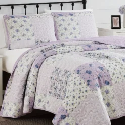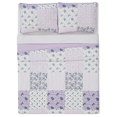 Elissa Patchwork Quilt Set Purple/White – Cannon