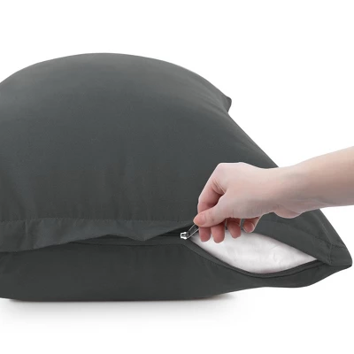 The luxurious 1800 series soft double brushed microfiber fabric is woven with the highest crafts and is the softest pillowcase on the market. These breathable pillowcases make you feel rested and refreshed when you wake up every day. Each pillowcases has a zipper stitched inside the pocket, you can either finish your cover with an invisible zipper or use an exposed zipper. The zippered pillowcases the pillows from being dirty and easy to install and replace. The combination of sophisticated design and durability and softness allows you to sleep comfortably every night for years to come! These pillowcases are suitable for any season, keep you cool during the summer, and warm in the winter, and the price is incredible. The machine washes warm in non-chlorine as needed and tumble dry low. Gets softer with each wash, yet will not fade at all. More durable than cotton. Naturally, fibers make care effortless, without pilling or shrinking.